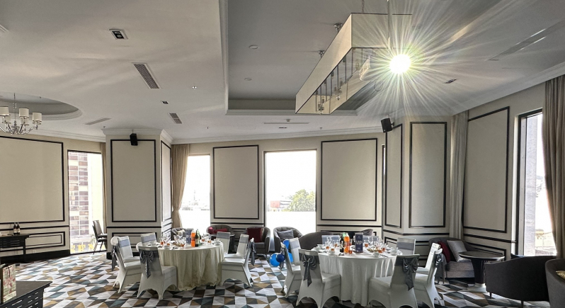Nằm tại tầng 5 của khách sạn, không gian ẩm thực được thiết kế tinh tế là lựa chọn lý tưởng cho các buổi tiếp khách, tiệc chiêu đãi và sự kiện doanh nghiệp. Thực đơn kết hợp hài hòa giữa ẩm thực Việt Nam và quốc tế, được chế biến bởi đội ngũ đầu bếp giàu kinh nghiệm, góp phần hoàn thiện trải nghiệm hội họp chỉn chu và chuyên nghiệp.